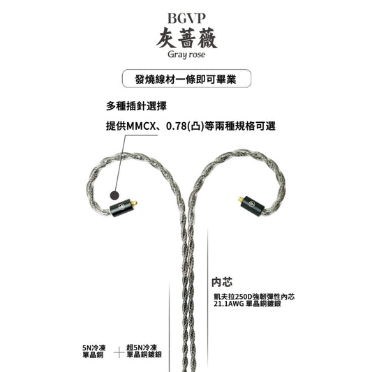 BGVP 灰薔薇 5N 單晶銅鍍銀線 | 4.4mm | MMCX/0.78mm 通用耳機升級線