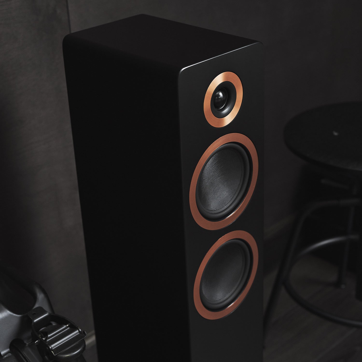 A55 MK2 採用特別訂製的喇叭單體,雙 5 吋低音單體配備特殊雙層振膜設計與超低失真馬達系統。雙層振膜結構結合了不同材質的優點,既能保持振膜的剛性以精準控制振動,又能在關鍵的中頻段提供超低失真表現,確保人聲與樂器的真實還原。1 吋軟球頂高音單體採用釹磁鐵驅動系統,釹磁鐵的高磁通密度提供了優異的暫態響應與靈敏度,讓高頻細節清晰明亮而不刺耳。箱體採用高品質 MDF 中密度纖維板製作,利用先進電腦模擬技術優化內部結構,在兩個低音單體之間設計了聲學阻尼流道,有效消除箱體內部的駐波共振,確保聲音的純淨度。雙低音反射孔設計經過精密調音,可根據擺放環境使用隨附的海綿塞進行調整,讓您靈活優化低頻表現。這些精心設計的單體與箱體配置,共同創造出開闊清晰的音場、層次分明的中頻與紮實有力的低頻,無論音量大小都能維持優異的音質表現。