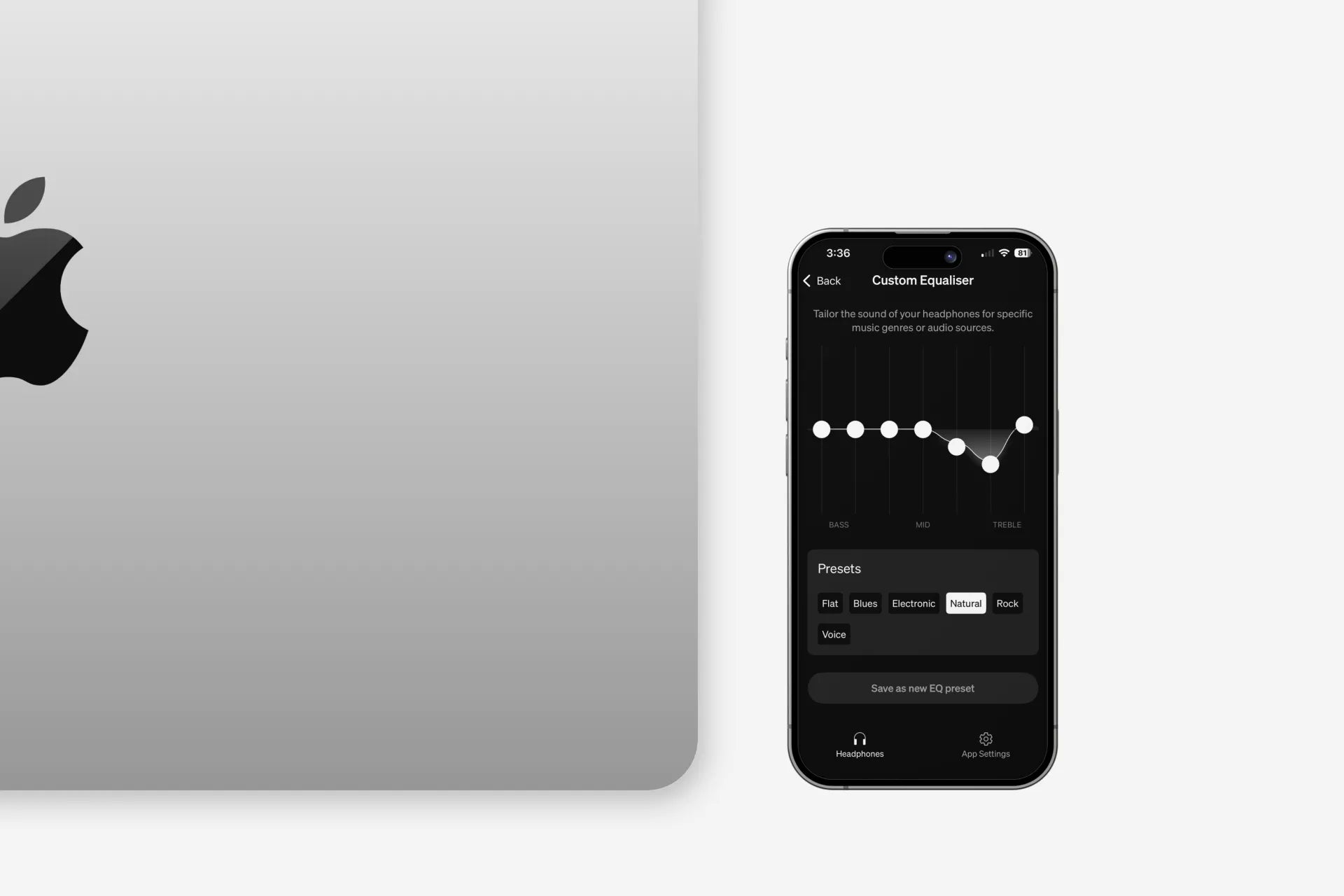 每個人對聲音的喜好都不同,P100 SE 讓您成為自己的調音師!透過直覺好用的 Melomania Connect App,您可以使用 7 段參數式等化器精細調整各頻段,也可以選擇內建的 6 種音樂風格預設(搖滾、電子、古典、爵士等),一鍵切換最適合當下音樂類型的音色。調整好的設定會儲存在耳機內,即使不開 App 也能保持您的個人化設定。