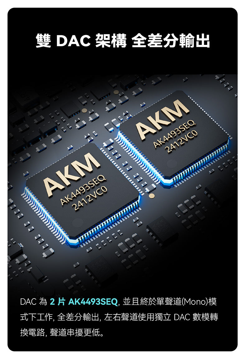 | DAC 解碼晶片 | AK4493SEQ × 2(雙晶片架構) |