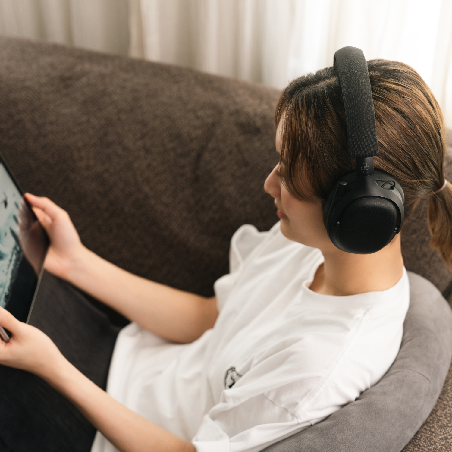 • 頭帶與耳墊採高通氣網布設計,減輕側壓力,長時間佩戴也舒適穩定