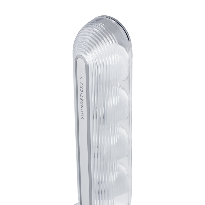 SoundSticks 5 首度加入互動式燈光系統,提供 6 種可切換的氛圍燈光模式(5 種動態燈效+1 種靜態模式)。繽紛色彩與迷人的流動效果隨著音樂節奏律動,透明圓頂在聲光交織下展現獨特魅力。您可以依照當下心情選擇舒緩放鬆、充滿活力或浪漫溫馨的燈光氛圍,讓音樂不只是聽覺享受,更是一場視覺與聽覺完美結合的沉浸式體驗。無論是浪漫晚餐、朋友聚會或獨處放鬆時光,燈光秀都能完美襯托氣氛,為您的空間注入生命力。