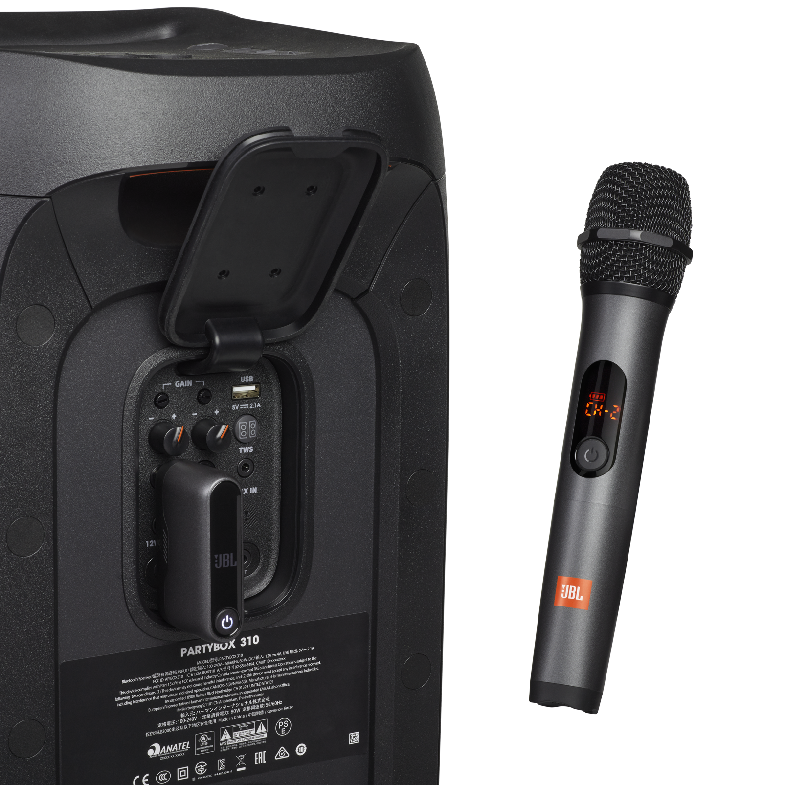 JBL PartyBox 系列音箱均配備專用的麥克風輸入孔,並針對人聲演唱進行優化調校。當您將 JBL Wireless Microphone Set 連接至 JBL PartyBox 音箱時,音箱會自動調整音訊設定,確保人聲清晰響亮,與音樂完美融合。無論是 PartyBox 110、310、710、1000,還是最新的 PartyBox Encore、Stage 320、Ultimate 等型號,都能與 JBL Wireless Microphone Set 完美搭配。